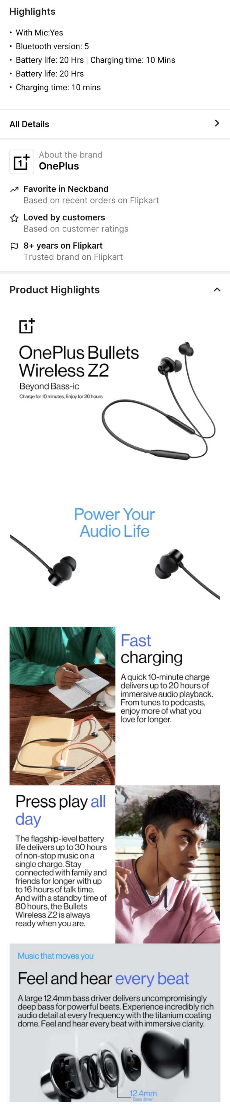 OnePlus Bullets Wireless Z2 Bluetooth Headset (Acoustic Red, In the Ear)